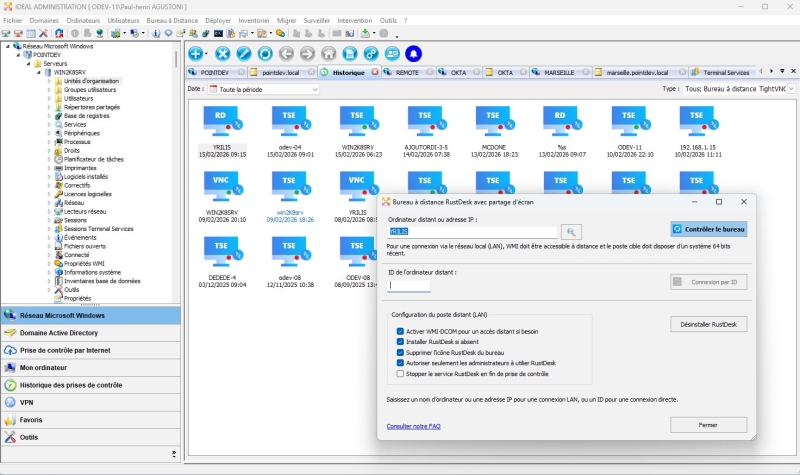 Avec IDEAL ADMINISTRATION 2026, l’administration Active Directory devient encore plus complète. Détection proactive, analyse intelligente des alertes via l’IA Cloud, aide à la décision et désormais prise de contrôle à distance sécurisée avec RustDesk, le tout sans agent, pour une administration centralisée, efficace et maîtrisée. ⬇️Version gratuite 30 jours